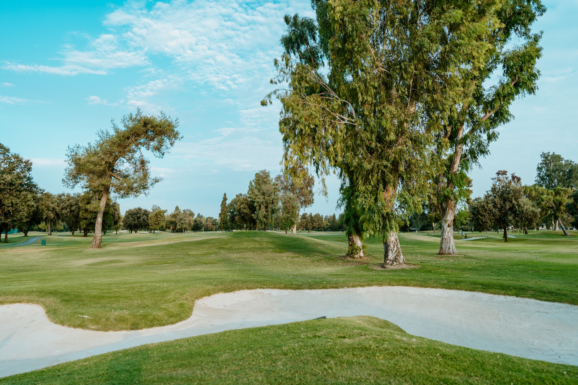 The Visalia Country Club golf course is an 18-hole, par-72 layout measuring 6,668 yards from the championship tees. The course is known for its relatively flat terrain, mature tree coverage, and strategic use of water and bunkering rather than elevation changes. Oak and pine trees line many of the fairways, influencing shot selection and shaping play throughout the round.